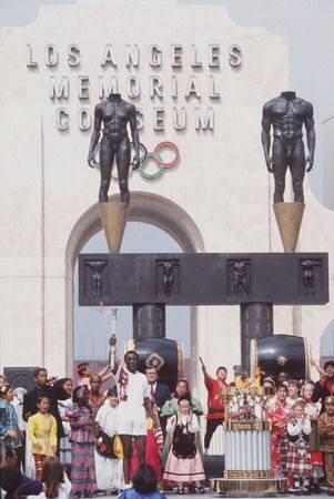 奥运圣火点燃:穆罕默德-阿里(拳击手) 运动员代表宣誓:特里萨-爱德华兹(篮球运动员)?